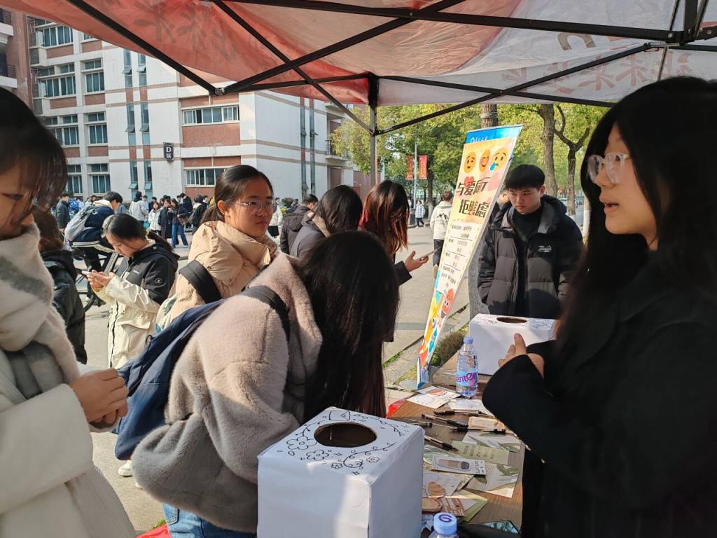活动设计了“烦恼倾诉”与“希望传递”两个互动环节。活动一开始便吸引了众多同学前来围观参与:有烦恼的同学把烦心事写下来,投进了“苦恼箱”,让烦恼的情绪有了出口;想要获取鼓励的同学,则从“希望箱”中抽取了满含祝福的纸条,洋溢出灿烂的笑容。