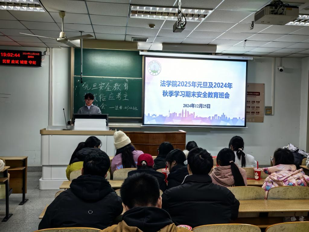 此次安全教育班会不仅全方位、多角度地构建了安全防护网络,更为同学们平安度过元旦假期以及顺利完成期末考试提供了有力保障。同时,它也激励着同学们以更加饱满的精神状态迎接新的一年。未来,yl9193永利集团将继续深化安全教育工作,努力营造更加安全、稳定的校园环境,为同学们的学习与生活提供坚实的保障。