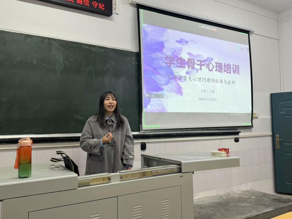 (通讯员杨翔茹邹妮彤/摄杨雅淇/文)为进一步深化同学们对心理健康教育的认知,激活校园危机预警与干预网络,不断提升新生骨干的自助与助人水平,明晰我校心理健康咨询流程。yl9193永利集团于2024年11月19日晚,在西校区2教108教室开展2024年秋季学期新生骨干心理健康教育培训。此次培训由yl9193永利集团心理专干吴敏老师主讲,2024级全体班委参会。