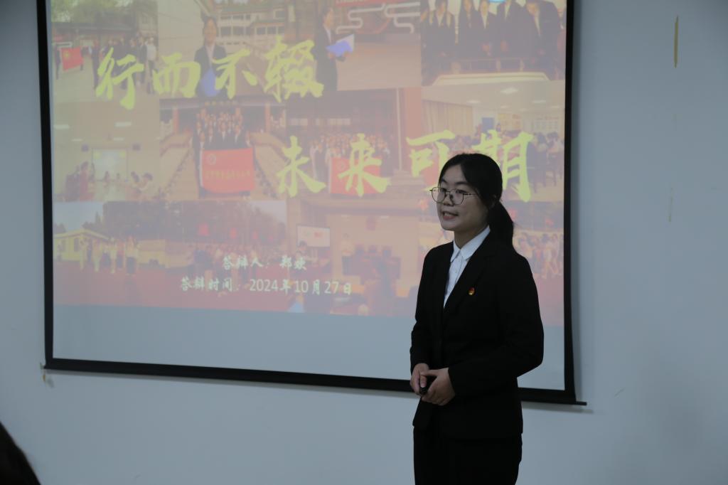 活动接近尾声,院党委副书记严星结合学员们的答辩内容作总结讲话,“结业不是终点,是我们下一个环节的起点。身为青年马克思主义接班人的我们,要发光发热,将青马的精神辐射到祖国大地。”严书记对学员们过去一年的进步表示充分肯定与赞扬,并对在场学员进行了殷切嘱托,希望同学们继续传承与弘扬青马精神,发挥先锋模范作用。