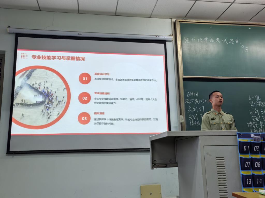 法学类12304班的退役军人曾喻结合征兵政策宣传视频,以平实易懂的语言,为同学们详细解读大学生征兵入伍政策,内容涵盖入伍流程、征收标准、优待政策以及管理办法等相关信息。