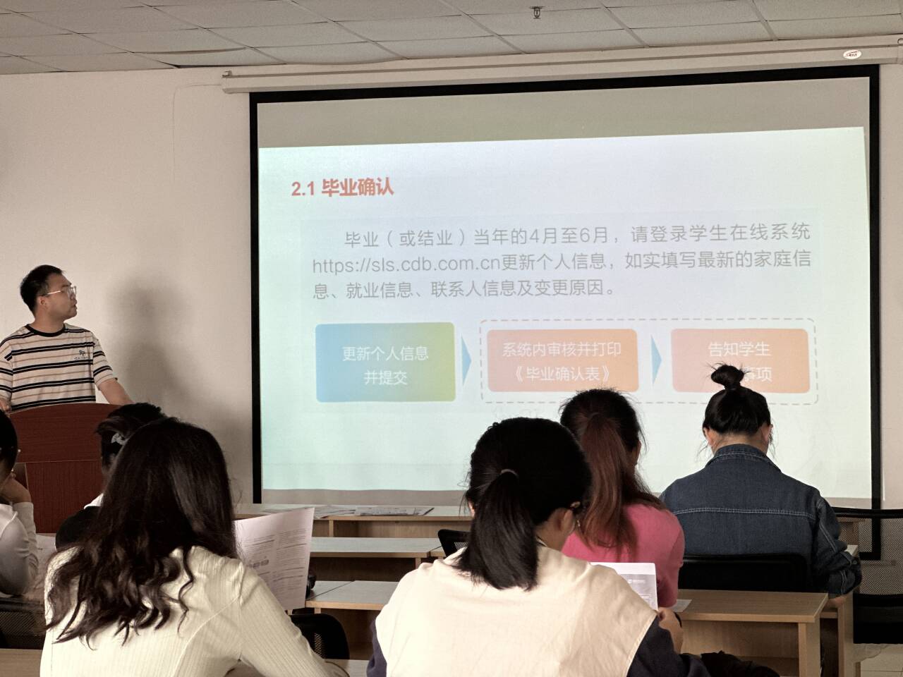 会上,雷礼强调诚信教育的重要性,并对毕业生提出期望。他表示,作为新时代的大学生,不仅要具备扎实的专业知识,更要具备良好的道德品质和诚信意识。希望毕业生们能够深刻认识到按时偿还生源地助学贷款的重要性和必要性,以实际行动践行诚信,为个人的未来发展和社会的进步做出贡献。随后,他就生源地助学贷款政策、还款流程、注意事项等方面进行了详细解读。他强调,毕业生们要认真学习相关政策,了解还款期限、还款方式、逾期后果等关键信息,确保按时足额还款。