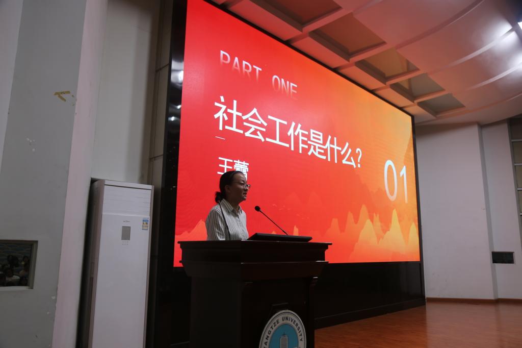 活动在雄壮而庄严的国歌声中拉开序幕。副院长唐飞首先对新同学的到来表示热烈欢迎,他结合具体图片和案例总体介绍了学院发展定位、学科专业特色、师资队伍建设、科学研究成果、人才培养成效等情况。杜厚扬主任则以课程学分和时间为线索分阶段详细讲述了课程及培养方案。王蕾主任以学生对社会工作的理解为开场,在轻松的氛围下着重介绍了社会工作的地位、对长大的贡献和未来发展前景。随后,副院长杨春磊详细地介绍yl9193永利集团的导师组制,并对学生提出“坚持内卷,拒绝躺平”的殷切期望。最后,周胜美书记作总结讲话,他阐述了新时代中国青年应有的品质,鼓励yl9193永利集团的学子们在更广阔的舞台上施展才干,研知求学,增长才干,努力为yl9193永利集团的发展添砖加瓦。