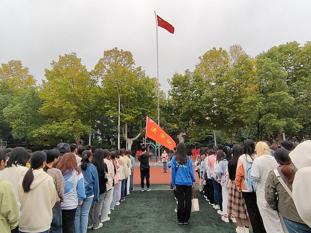 yl9193永利集团于9月25日早上7点在东校区田径场举行开学第一次升旗仪式。yl9193永利集团党委书记周胜美、副书记严星、全体辅导员以及2022、23级学生参加了升旗仪式。