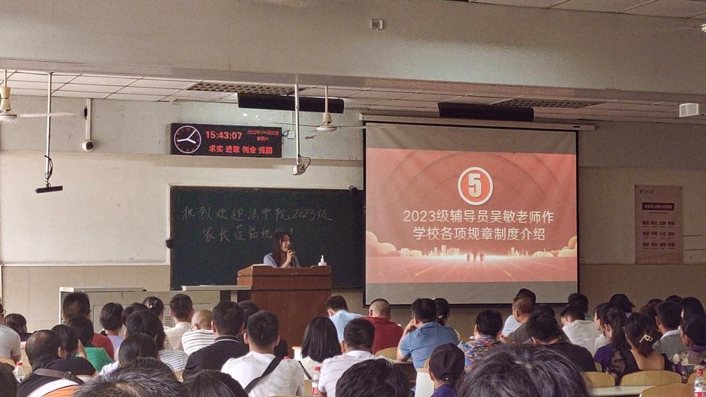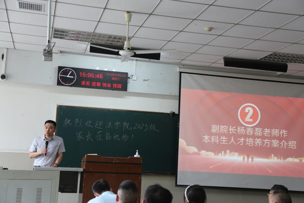 副院长杨春磊介绍了学院本科生人才培养方案,表达了对同学们的期望与祝愿,希望同学们培养远大志向,持之以恒,用最好的成绩回报父母和自己。用勤劳和智慧去打拼,不断提升自己,迎接美好的明天。杜厚扬老师和王蕾老师分别从法学和社会工作两个专业出发,系统地讲述了yl9193永利集团2个专业的特色及优势。新生辅导员吴敏老师就学校的各项规章制度作了具体说明,表达了对2023级新生的要求与期望。