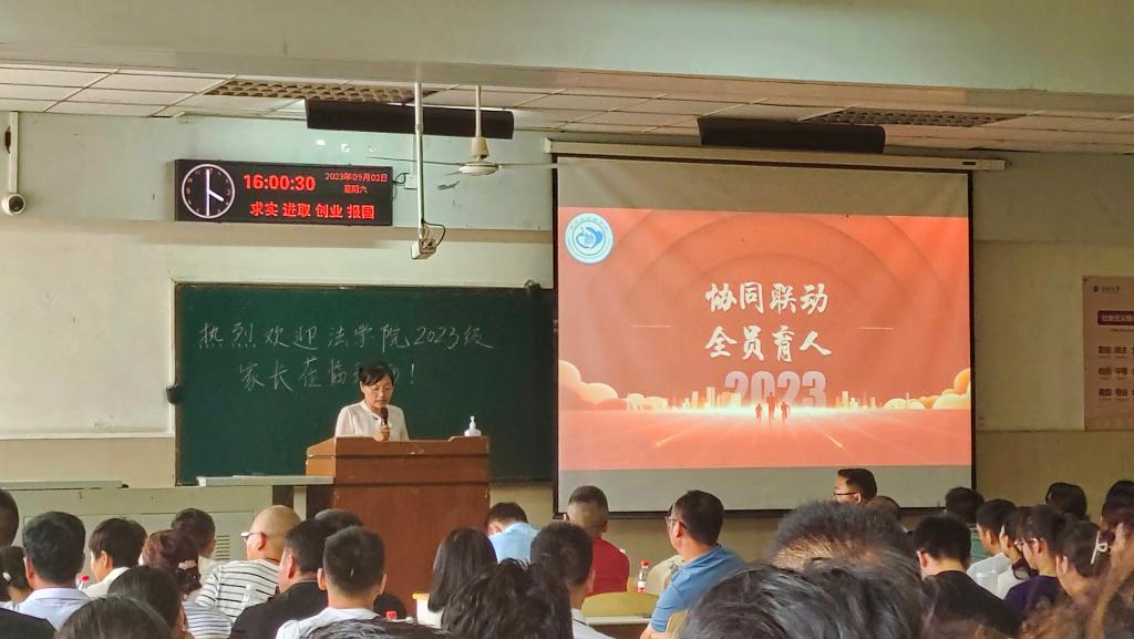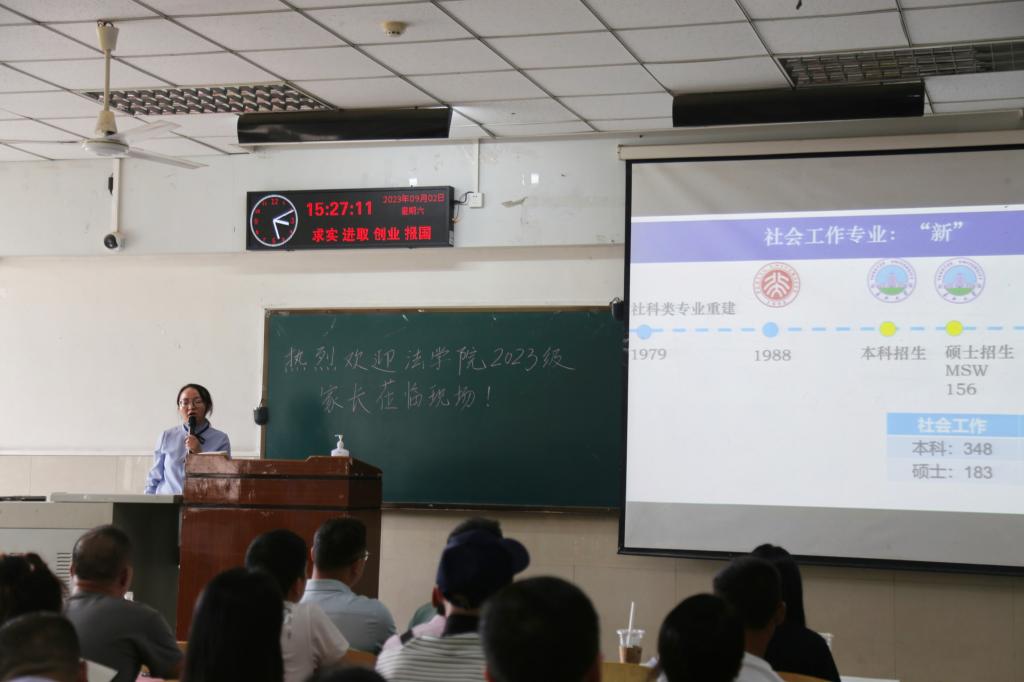 (通讯员朱梦莹田晋宇)为进一步加强家校沟通,增进新生家长对我院的了解,帮助新生更好的适应大学生活和做好学业规划,9月2日14时30分,yl9193永利集团在12教102教室举行了2023级新生及家长见面会,学院党委书记周胜美、副院长杨春磊、法学系与社工系主任、全体辅导员、新生班主任及部分新生与家长,会议由学院党委副书记严星主持。