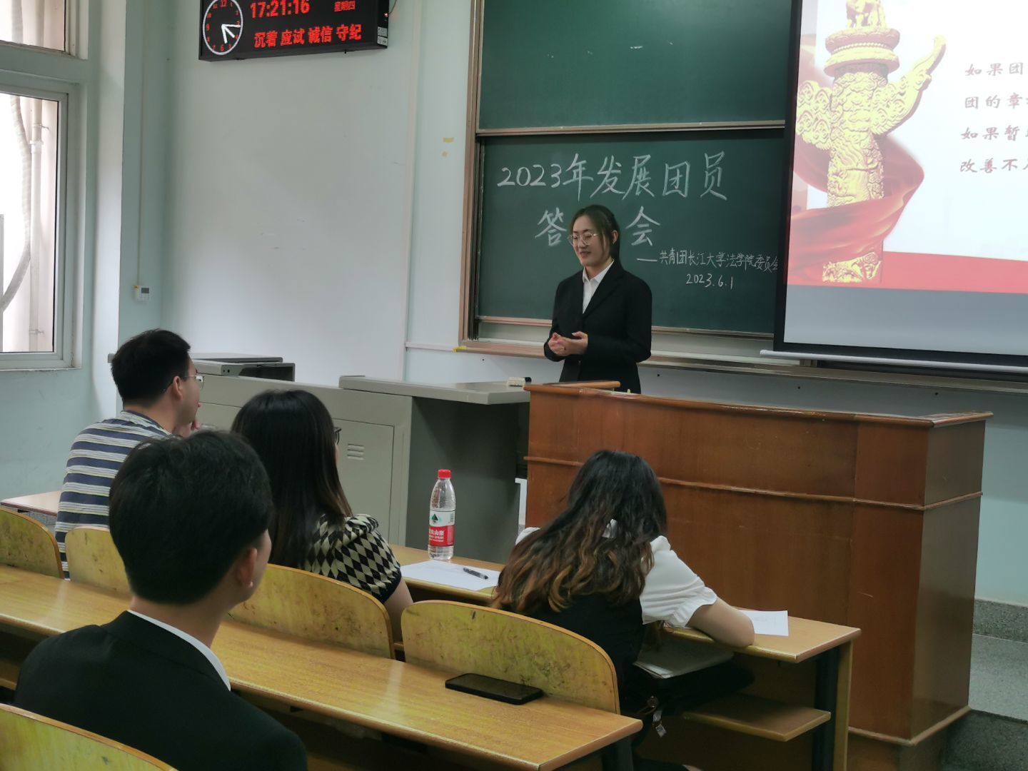 (通讯员张明韵)6月1日下午,在13-C-117教室,yl9193永利集团举行了2023年度新发展团员答辩会,院团委书记雷礼老师以及兼职辅导员邓明慧老师、任豆豆老师担任评委。