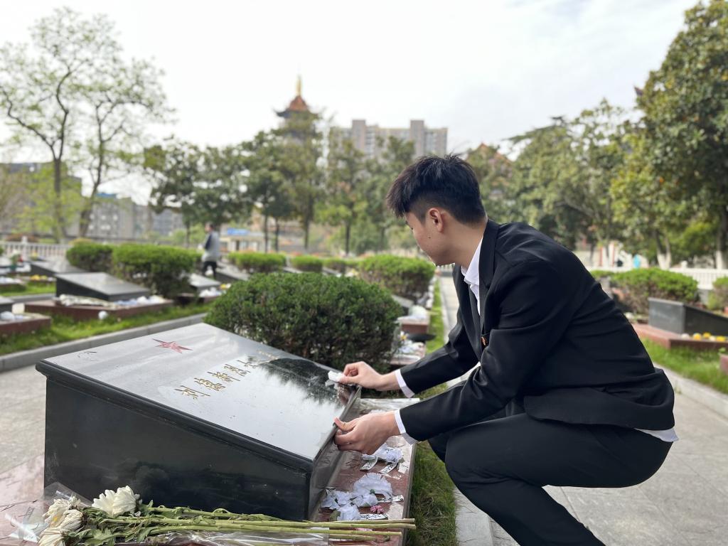 为了表达对⾰命先烈的悼念和崇高敬意,在场的全体师生通过向英烈献花,寄予了哀思。然后全体师生组织参观烈士纪念馆,在参观学习中,领略到⾰命先烈的崇⾼民族⽓节、⾰命精神和⾼尚风范。最后,辅导员雷礼通过讲述共产党员的一些不为功利、不求表扬英勇事迹,勉励大家要始终保持热忱的心,热爱祖国。