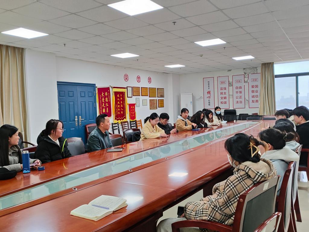 3月16日下午两点半,我院在文科大楼1110会议室举行了2023届考研复试指导会,院长李华成、指导老师王蕾、张敏敏及全体考研上线学生参加,会议由学院兼职辅导员任豆豆主持。