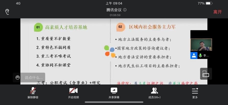 学会认知自我能力,培养大学生涯规划。9月7日下午,yl9193永利集团开展“法科生学业和职业生涯规划”主题校友交流分享讲座,本次讲座邀请校友余飞老师主讲,在此次分享交流会上,余飞老师希望大家脚踏实地,帮助新生正确认知自我;也鼓励大家仰望星空,引导大家对未来工作世界进行思考和探索,同时帮助树立正确生涯规划理念,培养学生生涯规划的能力。同学们纷纷表示这次讲座让自己对于大学学业了解、未来职业思考等方面意义重大,感觉收获颇丰。