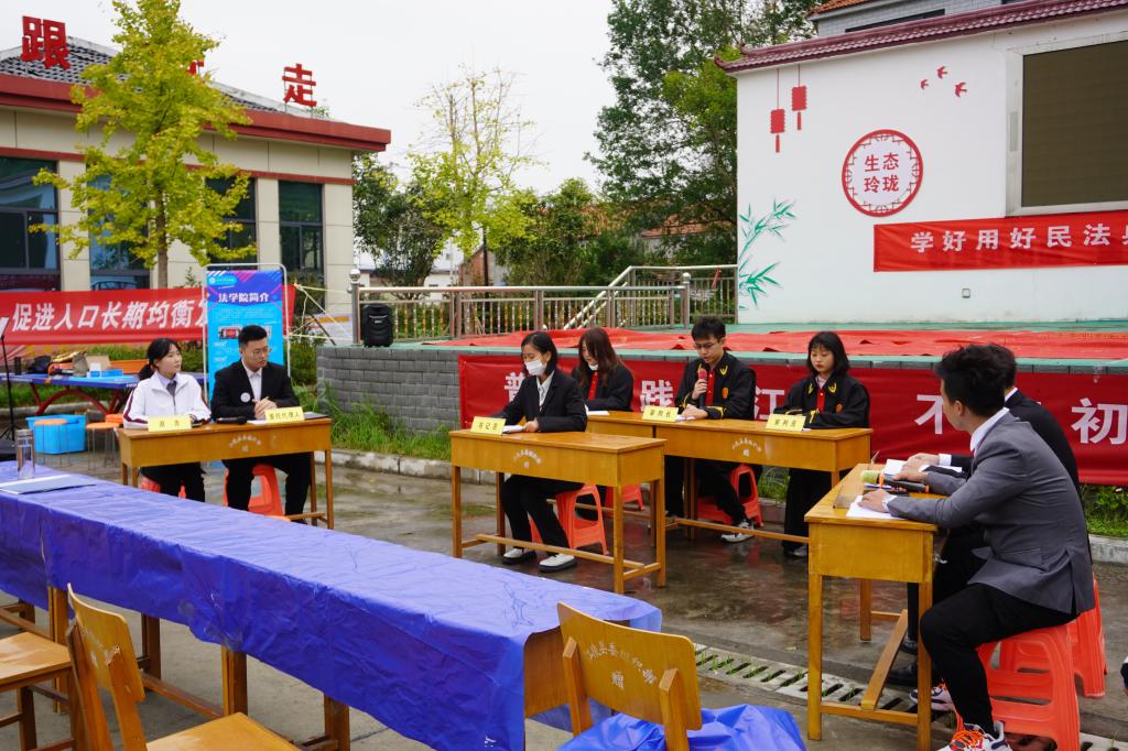 本次活动内容包括普法宣讲、社区服务、节目汇演等。开场舞蹈《芒种》,点燃了活动现场的氛围。同学们表演的民事模拟法庭《杨玉立诉郑麟鹏离婚纠纷案》、法律话剧《警情提示》等一系列法制节目,采用村民们喜闻乐见的形式宣传法律知识。赵永琪和田博文同学分别针对《优化营商环境条例》和《民法典》进行了普法宣讲,有奖问答环节将现场气氛推向高潮。
