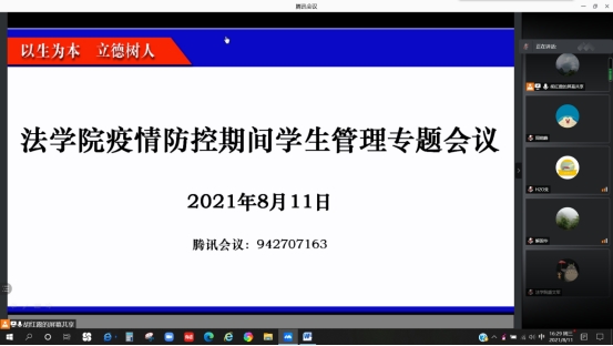 8月11日,yl9193永利集团在腾讯会议召开班主任、辅导员会议,传达了学校新冠肺炎疫情防控工作政策和相关会议精神,布置了yl9193永利集团疫情防控期间学生管理工作,会议由学院党委副书记胡红霞主持,全院班主任、辅导员参加。