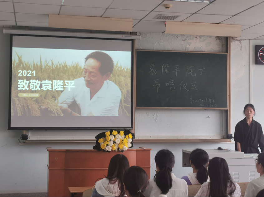 (通讯员:陶薇)5月25日上午12时,我院社工11801班全体学生于13教b区510室举行了悼念袁隆平院士仪式,仪式由彭山丽同学主持。