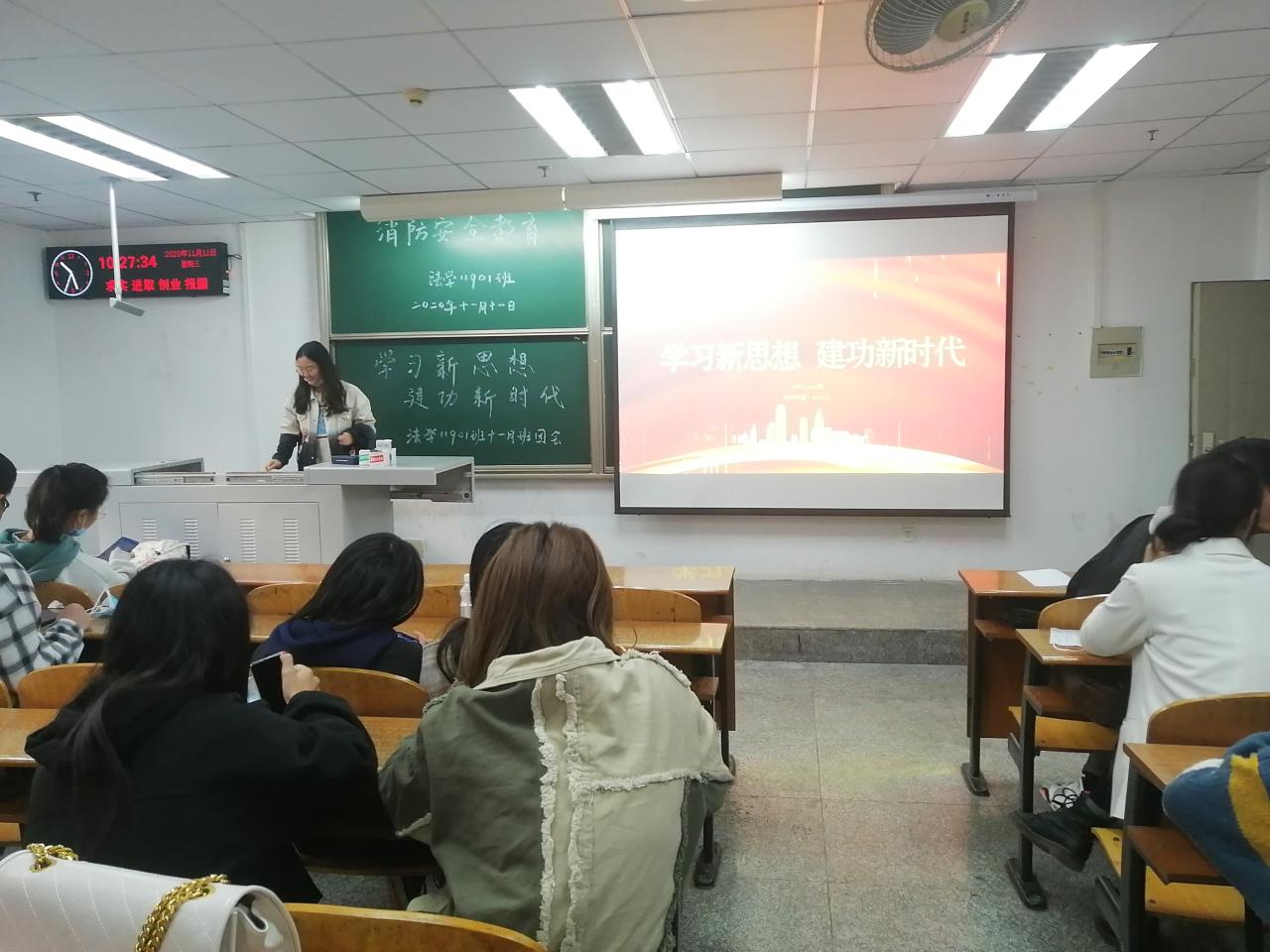 (通讯员 吕西霜)2020年11月11日上午10时整,法学11901班在14教南105教室开展了以“学习新思想•建功新时代”为主题的团会。届时,除5人因事请假外,其余37名同学全部到齐。