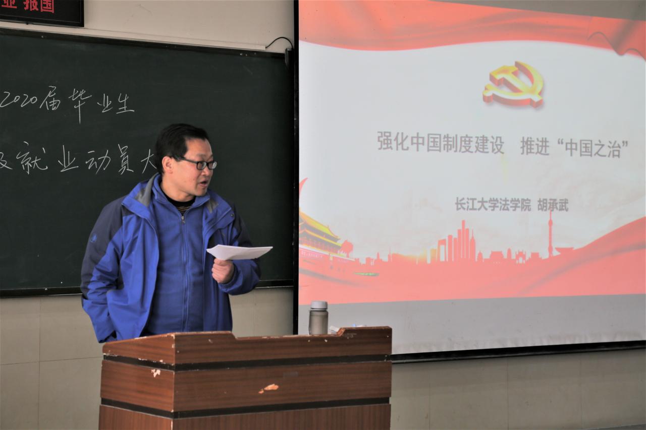 (通讯员:徐文健)12月26日下午4时许,我院副教授胡承武为16级学子宣讲了党的十九届四中全会精神。
