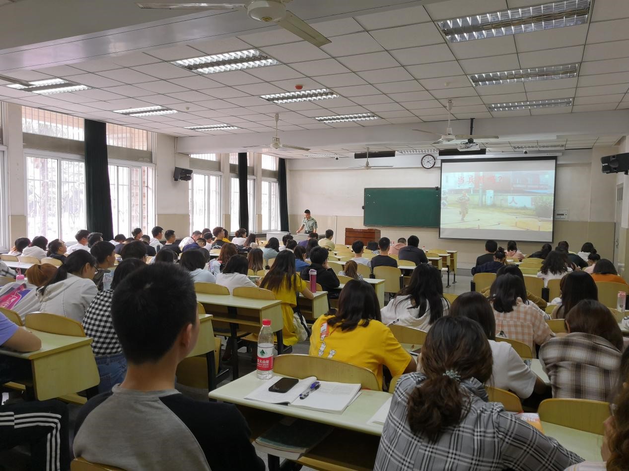 会议伊始,主持人周凯向同学们讲述了自己的服役经历,分享了入伍给自己带来的益处,并向大家介绍了本次活动的主讲人。
