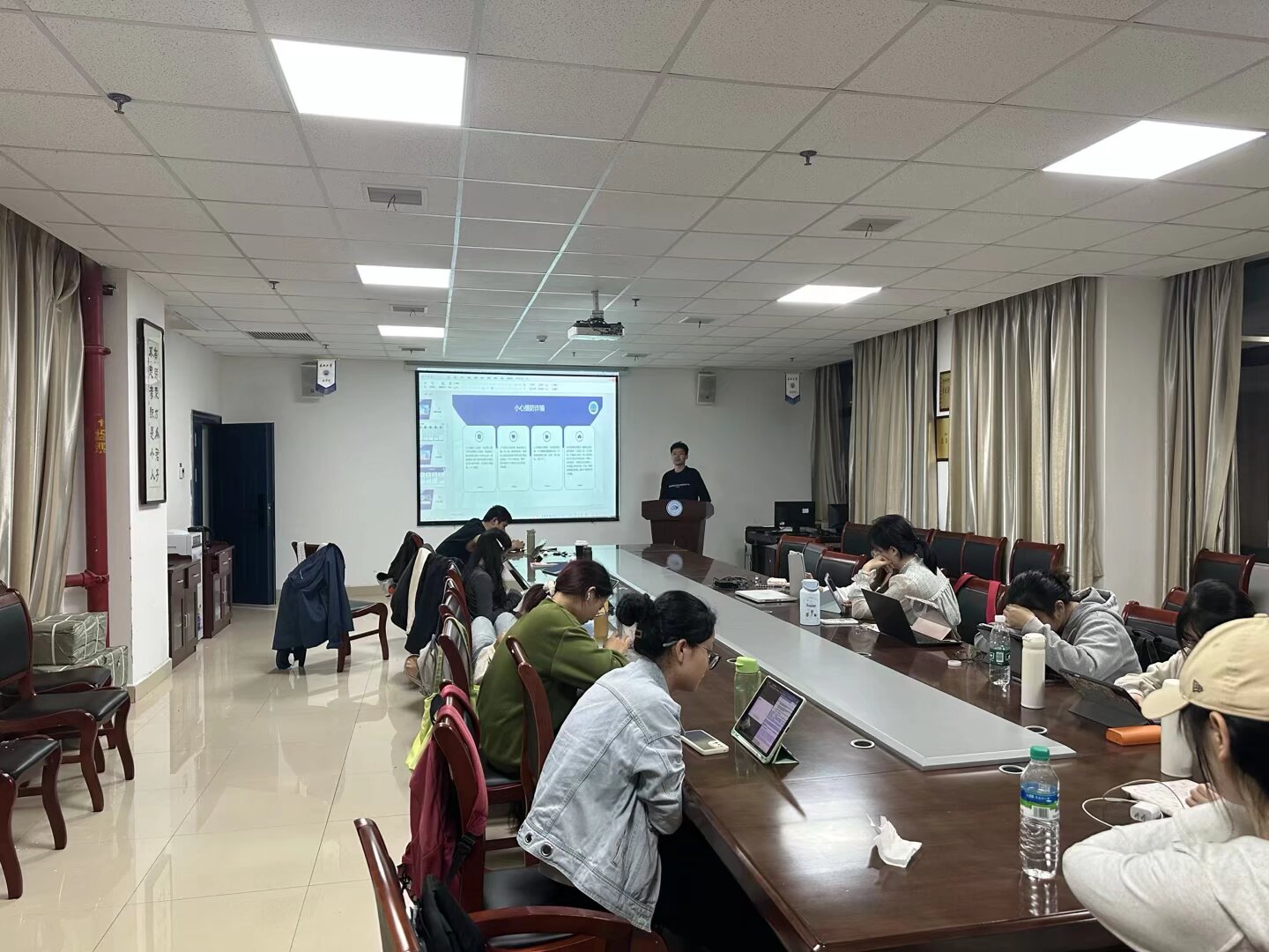 随后,安全委员结合近期发生的各类典型安全案例,开展多维度风险警示。在防诈骗教育方面,着重引导同学们树立“遇事多核实、转账先确认”的警惕意识,防范电信网络诈骗等各类骗局;同时,针对火灾、溺水等突发事件的预防与应对方法进行细致讲解,进一步强化同学们的人身安全与财产安全防护意识。
