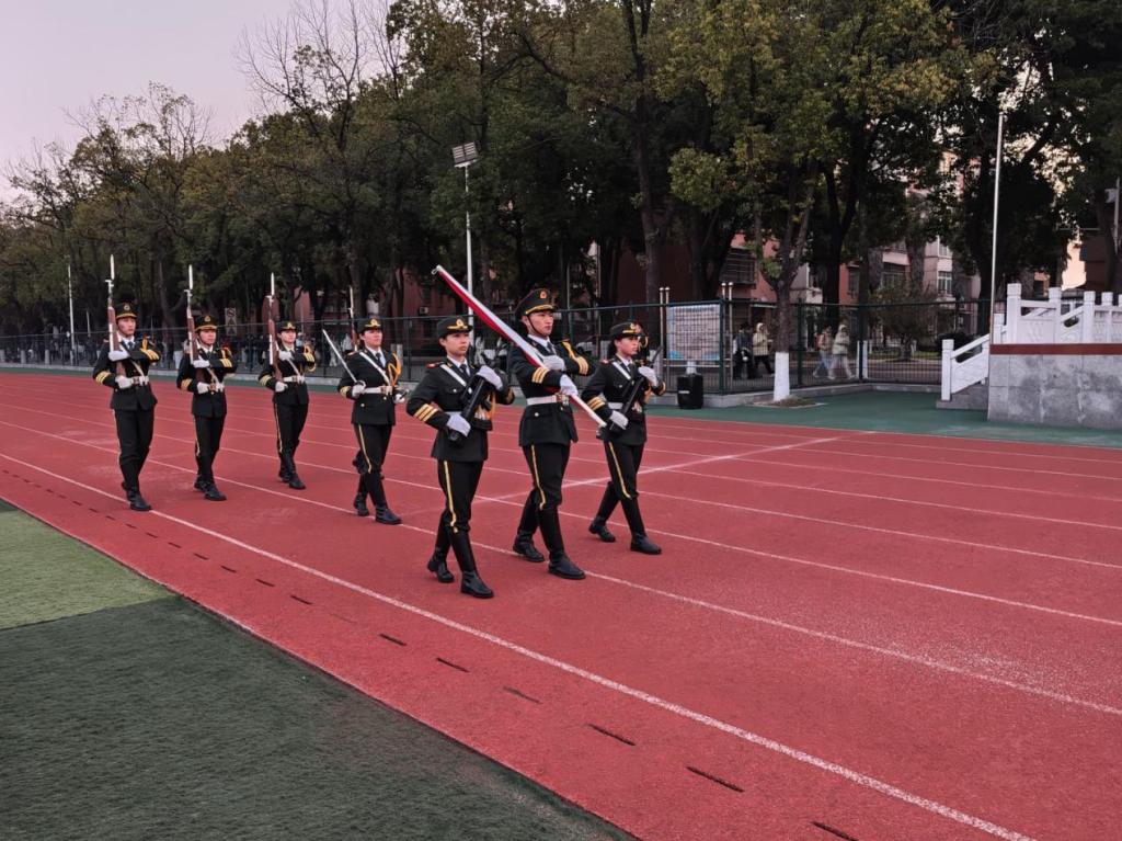 晨曦中,国旗护卫队迈着整齐步伐护送五星红旗入场,全体师生肃立。伴随嘹亮的国歌,国旗冉冉升起,现场氛围庄重肃穆。学生代表柯旎结合专业学习分享对宪法精神的理解,倡议同学们将宪法精神融入行动,以青春力量助力民族复兴。