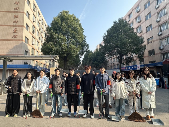 清扫现场,同学们迅速投入劳动状态,分工明确,各司其职。在学生宿舍楼区域,一组同学们对楼道地面进行了逐层清扫与拖洗,重点清除了楼梯转角、电表箱周边等隐蔽角落的积尘与杂物;另一组同学则专注于公共走廊窗户玻璃、防火门及各类标识牌的清洁,并使用长柄工具清除高处灰尘;对于绿化带及人行通道,同学们仔细捡拾落叶、纸屑等垃圾,不放过任何一个卫生死角。在整个清扫过程中,同学们发扬不怕脏、不怕累的精神,相互协作,配合默契。初冬的微寒被劳动的热情所驱散,场所内外一派热火朝天的景象。经过全体同学两个多小时细致认真的清扫劳动,主要打扫区域和附近的公共环境面貌得到显著改善。
