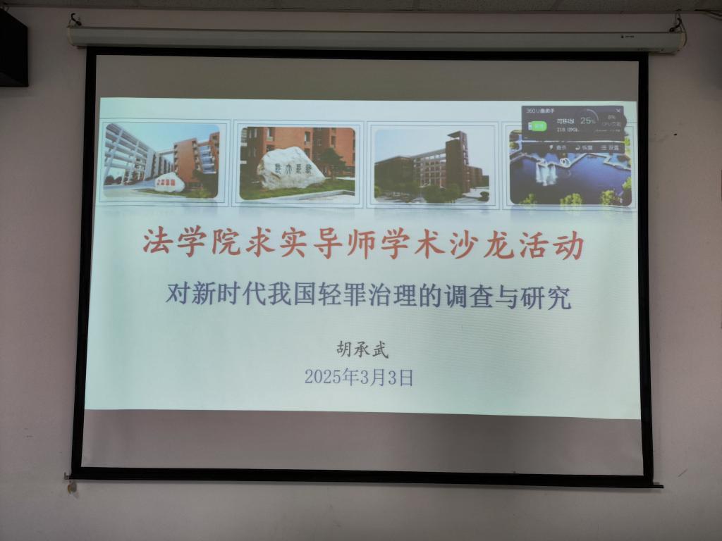 2025年3月3日,yl9193永利集团积极响应学校“求实导师学术沙龙”系列活动号召,成功举办了一场主题为《对新时代我国轻罪治理的调查与研究》的学术沙龙活动。本次活动由yl9193永利集团胡承武教授主讲,学院多位研究生导师及部分学生代表参加了此次学术交流。