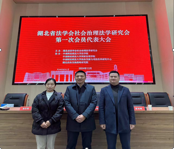 2024年12月12日,湖北省法学会社会治理法学研究会第一次会员代表大会在中南财经政法大学召开,70多位来自省内高校、法律实务部门的专家学者参加成立大会,湖北省法学会副会长刘茂林、蔡红耘,中南财经政法大学副校长邹进文等领导出席。
