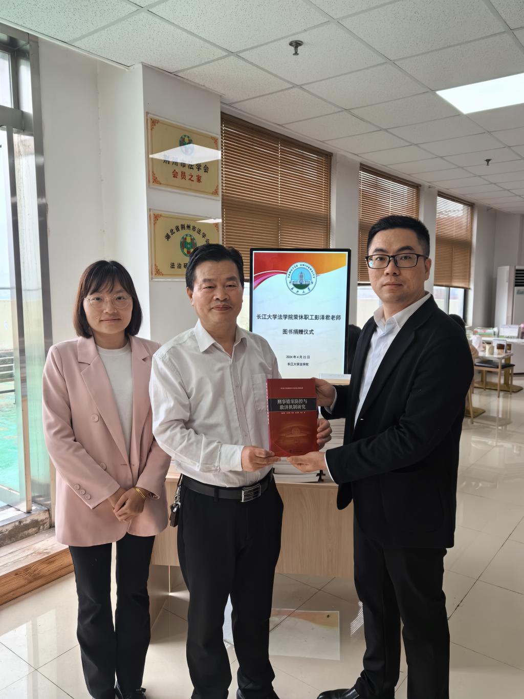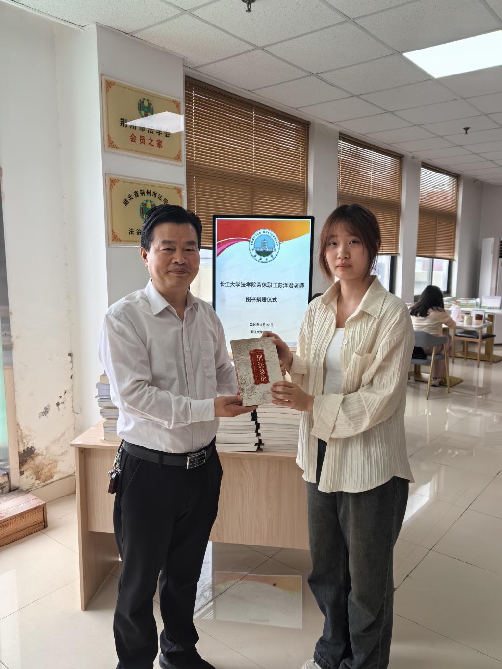彭泽君捐赠了他参与主编的《刑事错案防控与救济机制研究》等法律图书共计15种,200余册。彭泽君表示书籍是文明的传承工具,承载着人类的智慧和经验。将这些专业书籍捐赠给学院,就是将这份智慧和经验传递给更多的学生,希望这些书籍能够为yl9193永利集团的学生提供知识和启迪。同时,他也希望激发更多的学生对书籍的热爱,对专业的热爱。