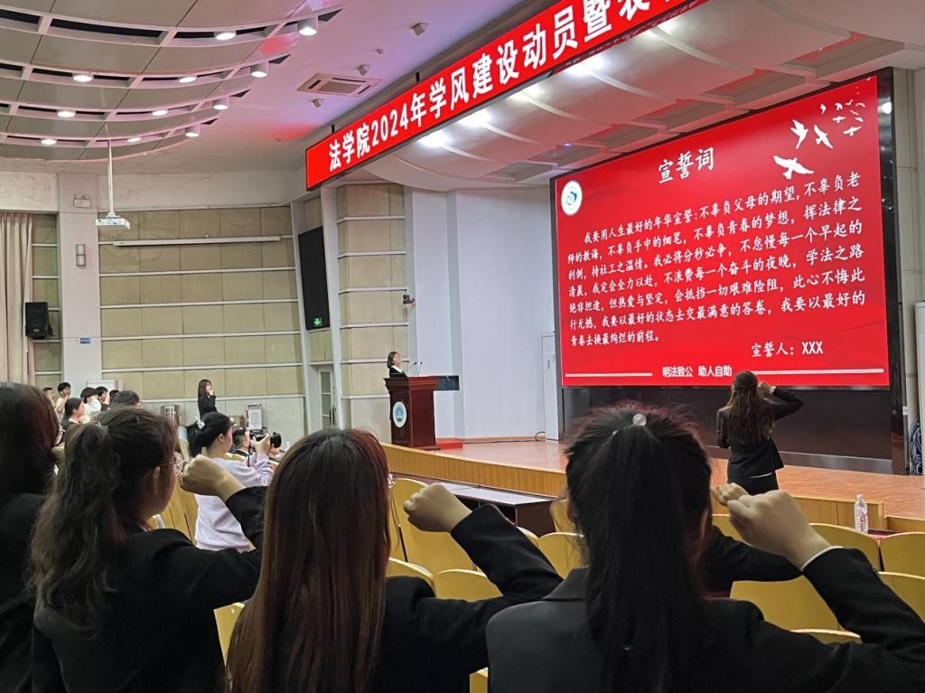 最后,由胡曦禾同学带领全体学生进行宣誓。至此,yl9193永利集团2024年学风建设动员暨表彰大会圆满结束。