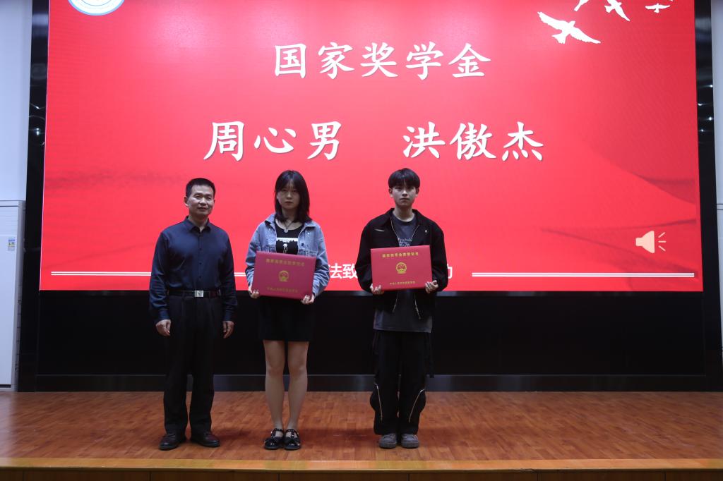 大会第三项,yl9193永利集团对2023年先进个人进行了表彰。何钰滢、谭芸芸等14同学荣获永利集团奖学金、德贵奖学金,孔令爱、蔡紫薇等29名同学荣获国家励志奖学金,周心男、洪傲杰荣获国家奖学金。