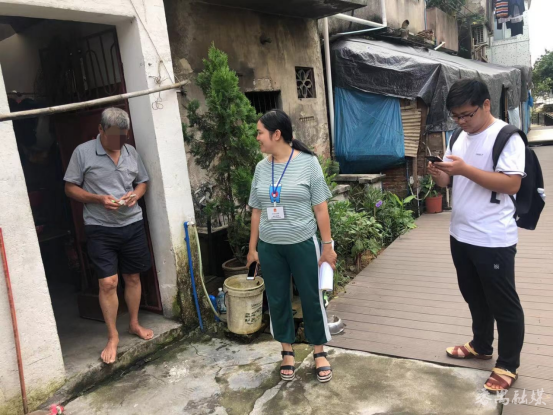 黎爱滨(中)走访群众