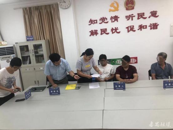 黎爱滨(左三)调解矛盾纠纷