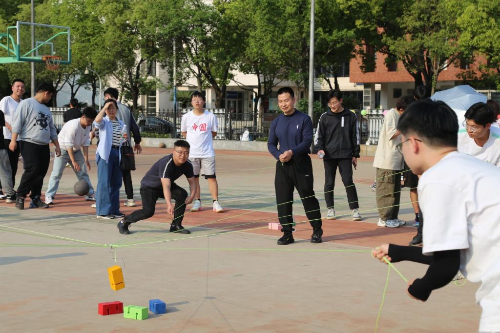 活动由辅导员盛文军致开幕词,鼓励各班级同学积极参加项目活动,展现yl9193永利集团学子积极向上的风貌。各项比赛依次进行,伴随着激昂的音乐和加油呐喊声,整个赛场逐渐沸腾起来。在撕名牌、抖乒乓球、大排球等项目中,各参赛队员紧密配合,展现了顽强拼搏的意志。在合力建塔中各参赛队伍展现了极高的团结协作能力。在拔河比赛中,场上参赛队员奋力拼搏,团结一心,心往一处想,劲往一处使。现场激烈的比赛将整个活动氛围推到了高潮!