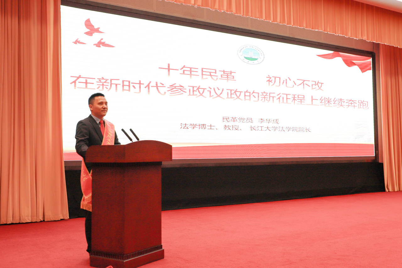 会上,全省8位先进典型从不同侧面、不同视角,讲述了他们在本职岗位和民主党派工作中,与党同心、爱岗敬业、参政议政、奉献社会的故事,展现了民主党派成员过硬的政治素质、高尚的道德情操、积极的进取精神和强烈的社会责任感。民革党员、yl9193永利集团院长李华成作为全省先进典型,以《十年民革 初心不改——在新时代参政议政的新征程上继续奔跑》为题,从立初心,积极参政议政;做实事,解决群众难题;担使命,主动建言献策等三方面作了报告。