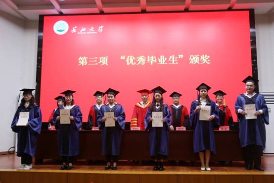 庄严的国歌声响彻全场,毕业典礼正式拉开帷幕。yl9193永利集团党委书记周胜美宣读优秀毕业生表彰文件,优秀毕业生们一一上台领奖。