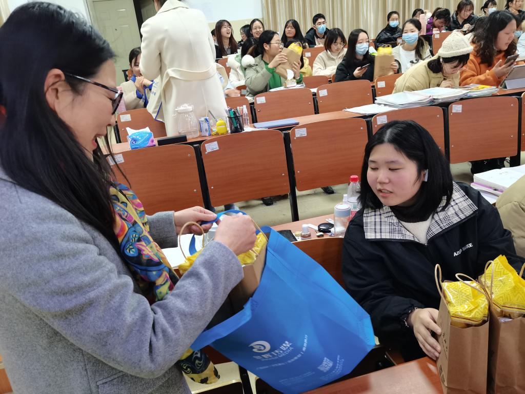 最后,学院老师们为考研学子一一送上慰问品,祝愿同学们都能一战成硕,在同学们的热烈掌声下,活动圆满结束。