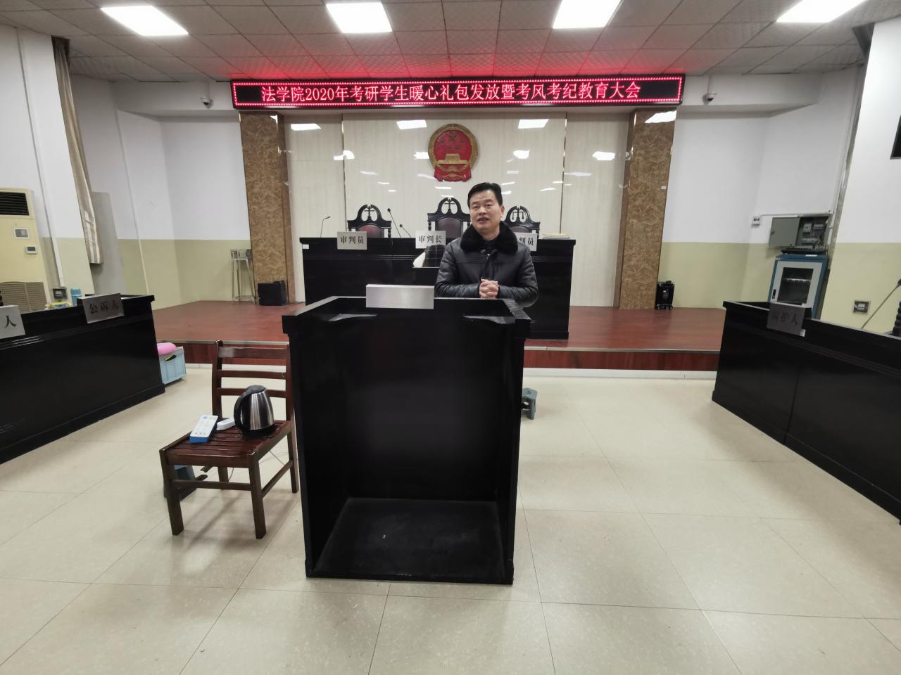 (通讯员:雷瑞婷)12月17日下午14时30分,yl9193永利集团于1教模拟法庭开展考研学生暖心礼包发放暨考风考纪教育大会,yl9193永利集团院长李华成、副院长彭泽君、党委副书记胡红霞以及2017级各班班主任老师出席此次大会,辅导员盛文军老师主持大会,yl9193永利集团2017级全体考研同学到场。