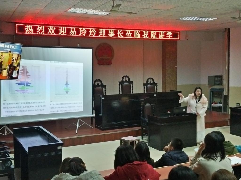在简单的自我介绍后,易玲玲老师通过心理学小测试与同学的互动,让大家对心理学及催眠心理治疗有了初步的认识。随后,易玲玲老师系统地向大家解释了催眠的定义。同时,她分享了自身的催眠趣事并放映了催眠的相关视频——“架人桥”,让大家深入了解了催眠心理治疗。