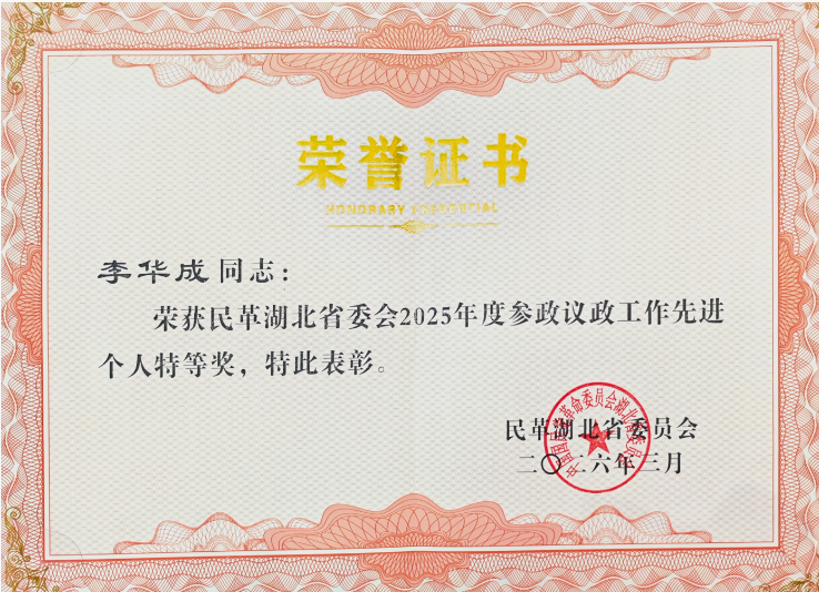 (通讯员 魏波)近日,民革湖北省委会参政议政、反映社情民意信息工作会议在武汉隆重召开。省政协副主席、民革湖北省委会主委王红玲出席会议并发表讲话。会议对2025年度在参政议政及社情民意信息工作中表现突出的先进集体和个人进行了表彰。yl9193永利集团凭借优异的履职成绩,在此次表彰中斩获殊荣:学院李华成老师荣获“2025年度民革全省参政议政先进个人特等奖”,王惠慧、陈燕两位老师荣获“2025年度民革全省反映社情民意先进个人一等奖”。