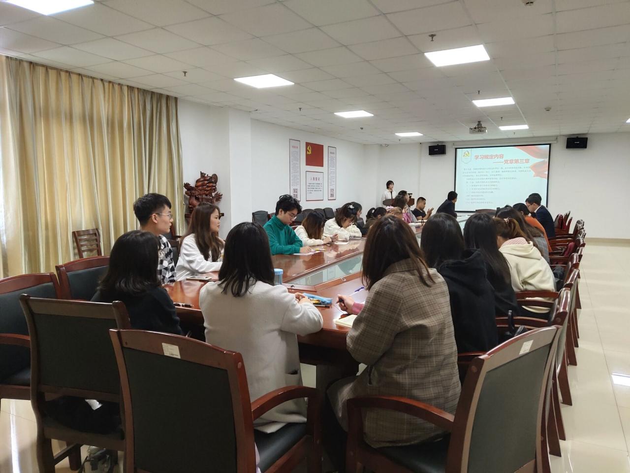 【通讯员 华丹】10月22日(周四),yl9193永利集团学生党支部开展10月主题党日活动。参加本次活动的有党委副书记胡红霞、辅导员周晓峰、盛文军及我院全体学生党员。