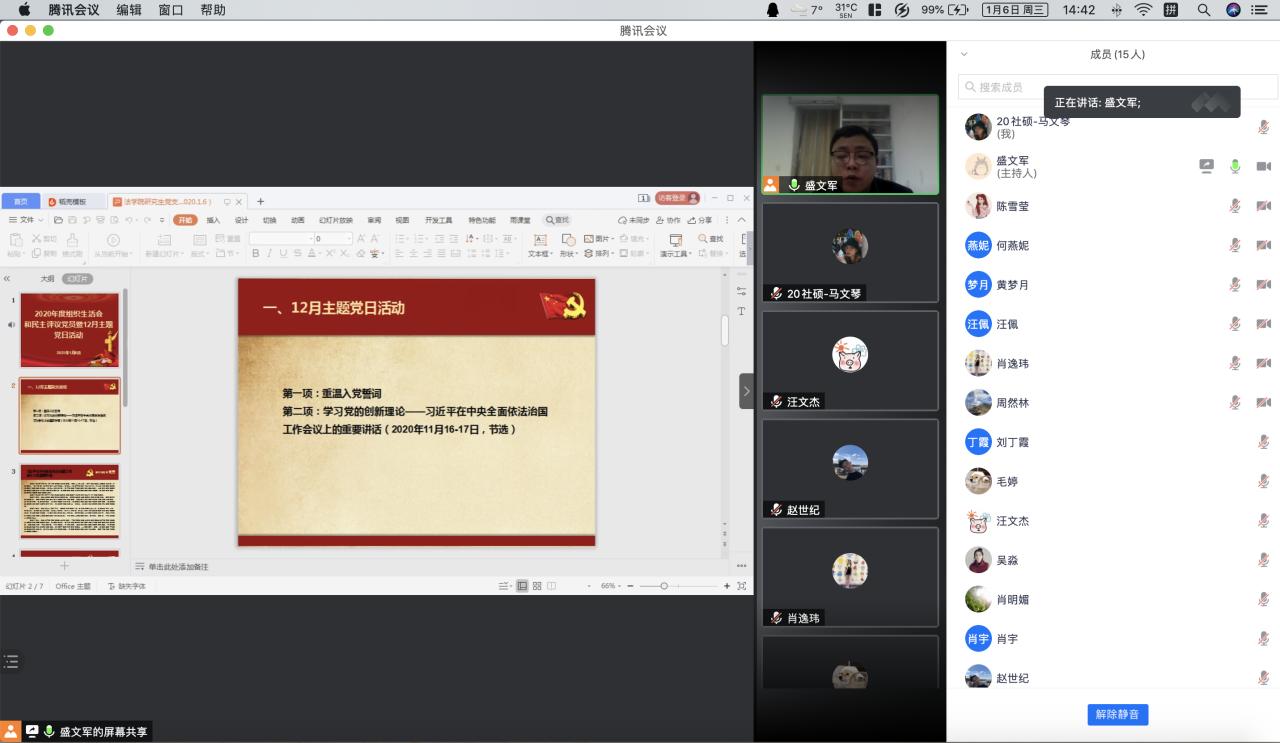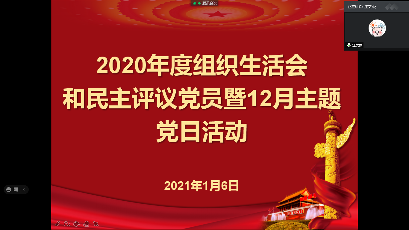 2021年1月6日14:30,yl9193永利集团研究生党支部通过腾讯会议开展了线上2020年度组织生活会和党员民主评议暨12月主题党日活动。会议由研究生党支部书记盛文军主持,全体研究生党员参加此次会议。