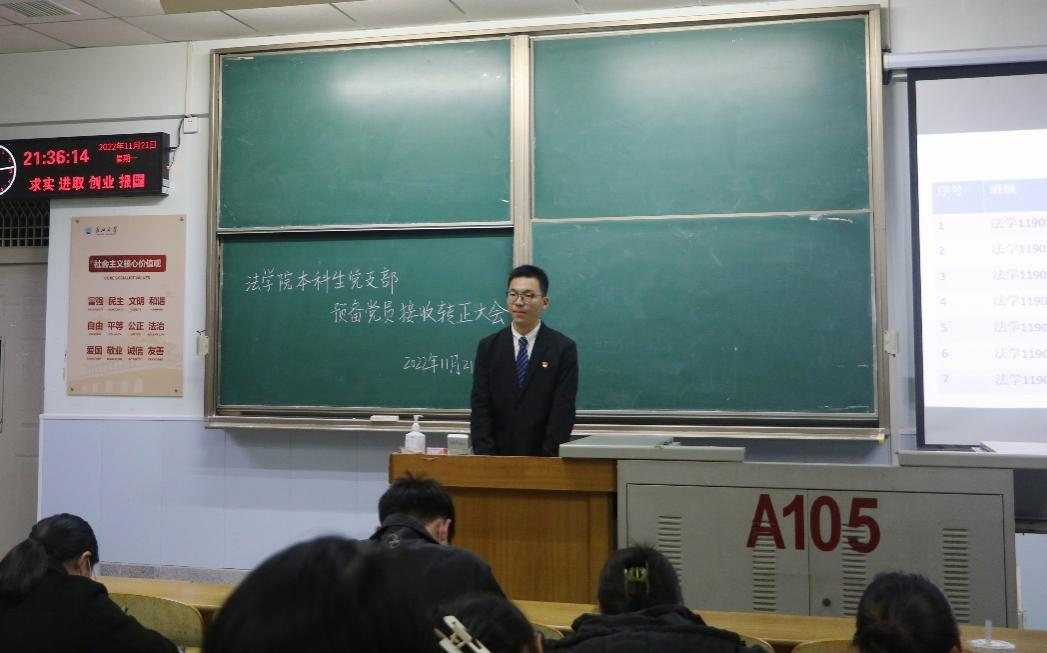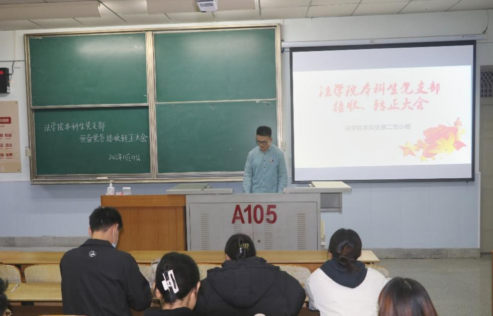 (通讯员 邓交)11月21日晚7时,yl9193永利集团本科生党支部于东校区13教A-105教室召开了2022下半年预备党员接收、转正大会、支部支委换届选举大会暨十一月主题党日活动,大会由党支部成员张毅峰同志主持。