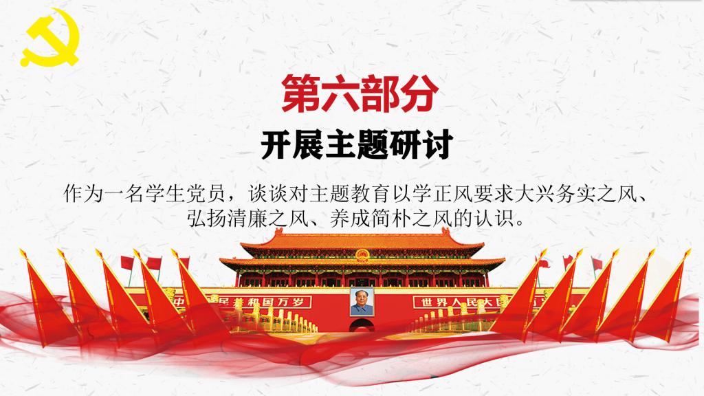 主题研讨环节,吴文珺同志表示:“作为学生党员,在平时的理论学习中,不能只浮于表面,要深入思考,学以致用。要坚持实事求是,自觉树立正确的价值观。”田应立同志提出,“要坚持目标导向,坚持问题导向,加强理论学习,将理论联系实际,在日常的工作学习中查漏补缺,严格要求自己。”