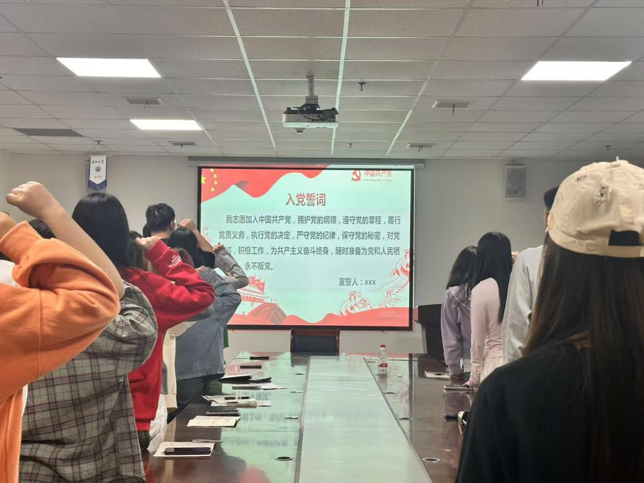 本次活动由李银亮同志主持,通过理论学习、专题研讨与实践教育相结合的方式,引导学生党员筑牢思想防线,勇担时代使命。活动伊始,袁青华同志带领全体党员重温入党誓词,铿锵有力的誓言彰显了学生党员的政治忠诚与使命担当。随后,支部组织党员交纳本月党费,以仪式感强化党员身份意识和组织观念,夯实党性修养根基。在理论学习环节,支部成员集体研读《中国共产党章程》第五章第三十至三十三条,深入领会党的组织制度和纪律要求。随后,任媛媛同志以“国家安全人人有责”为主题讲授微党课,强调青年党员在维护政治安全、网络安全、意识形态安全等领域的重要责任。在主题研讨环节,学生党员结合自身学习生活实际,围绕“如何在日常实践中践行总体国家安全观”展开热烈讨论。大家一致认为,学生党员应做到三点:一是强化思想引领,主动学习国家安全法律法规,提升政治敏锐性;二是立足校园阵地,积极参与反诈宣传、网络文明倡导等活动,守护校园安全稳定;三是发挥专业优势,将学科知识与国家安全需求结合,如信息专业学生助力数据安全、外语专业学生讲好中国故事,以青春力量筑牢国家安全防线。