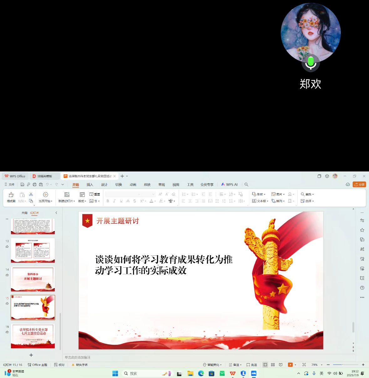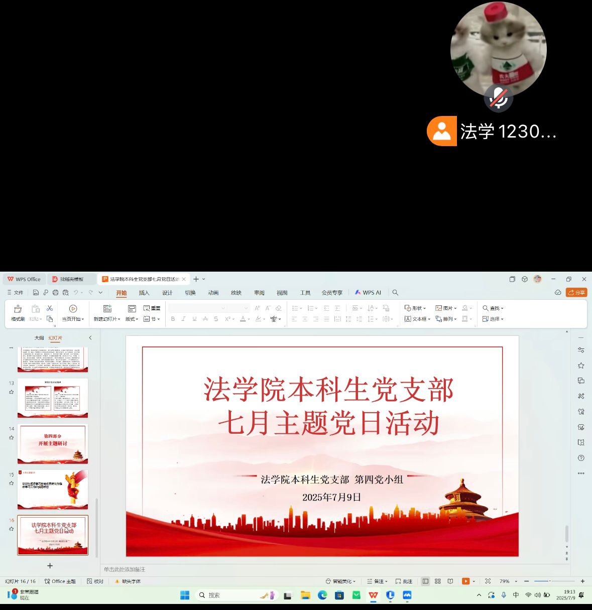 (通讯员 张梓萱)7月9日,yl9193永利集团本科生党支部于腾讯会议线上开展7月主题党日活动。本次活动由任易慧同志主持,yl9193永利集团本科生党员全体参加。