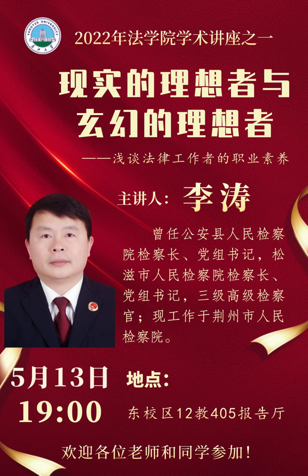李涛,曾任公安县人民检察院检察长、党组书记,松滋市人民检察院检察长、党组书记,三级高级检察官;现工作于荆州市人民检察院。