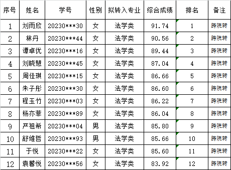 根据《永利集团普通本科生专业分流与转专业管理办法(试行)》(长大校发〔2019〕260号)文件以及本科生院《关于2023级普通本科生春季转专业工作的通知》要求,结合yl9193永利集团2023级本科生转专业工作方案的具体安排,我院于3月9日组织了对拟转入学生的面试。综合必修课平均成绩和面试成绩,经我院党政联席会讨论通过,现将拟接收名单公示如下: