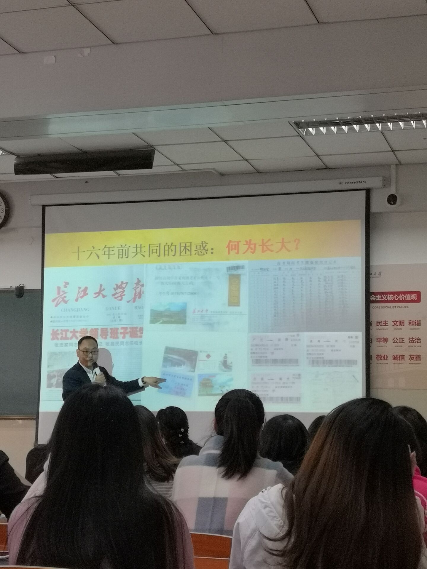 杨天宝从自己十六年前来到长大开始说起,分享了自己的求学经历。讲到求职经历,他从自己毕业后在司法局工作的四年说起,讲了自己四年中的迷茫,以及最后改变“历史轨迹”的契机,也讲到了自己之后在检察院、金融机构、律师事务所工作的经历,根据自己的亲身经历勉励学弟学妹在以后的工作中也要坚持不懈、三省吾身。在就业抉择方面,杨天宝建议学弟学妹从“收入、认同、前景、爱好、能力、性格”等多方面进行综合考量,选择一条适合自己的路。但是不管走哪一条路都要努力上进,因为“若无积累,便无飞跃”。