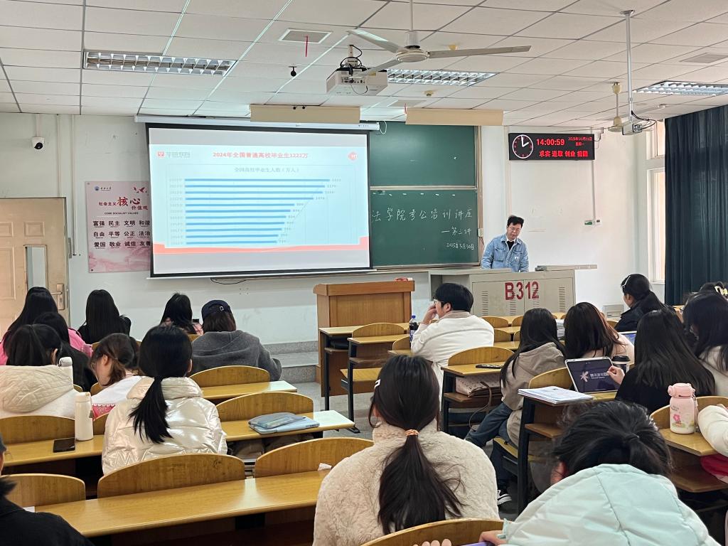 (通讯员 胡曦禾)2025年3月31日,yl9193永利集团公务员考试培训讲座第三讲在13教B312举行,讲座由专业公考培训机构华图教育章康老师主讲,yl9193永利集团部分22级本科生参加。